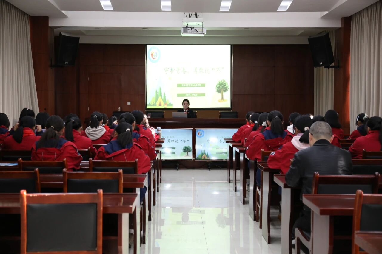 芜湖市关工委旗帜报告团繁昌分团成员、繁昌区检察院“清声”法治宣讲团成员、检察官助理董婉如带领同学们参观了“芜未花开·春小苗”未成年人法治教育实践基地,为同学们讲解了检察机关的职能定位与工作流程,并结合办案实际,用通俗易懂的语言解读《中华人民共和国预防未成年人犯罪法》《中华人民共和国未成年人保护法》等法律知识以及涉未成年人案件特殊程序,通过讲解展板案例剖析毒品犯罪、校园欺凌、网络诈骗等常见风险。