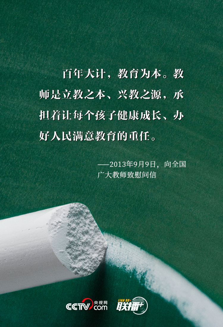 “三寸粉笔,三尺讲台系国运;一颗丹心,一生秉烛铸民魂。”习近平总书记一直以来高度重视中国教育发展和教师工作,身体力行倡导尊师重教,深刻指出“好老师”对于个人、集体乃至民族复兴的重要意义,深情表达对中华民族“梦之队”筑梦人的殷殷厚望。央视网《联播+》特梳理,与您共同学习。