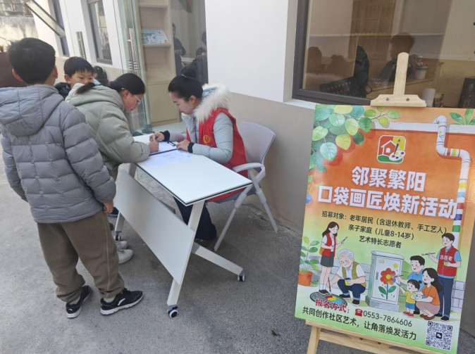 2026年1月10日上午,在繁昌区第五届公益创投项目的支持下,芜湖市繁昌区繁阳镇繁阳社区救急难互助社打造的“邻聚繁阳・口袋画匠焕新行动”项目启动暨志愿者首次赋能培训会,在社区党群驿站举行。社区党员骨干、退休长者、亲子家庭代表、高校艺术志愿者及共建单位代表等齐聚,以艺术赋能社区治理,助力老旧社区焕新。