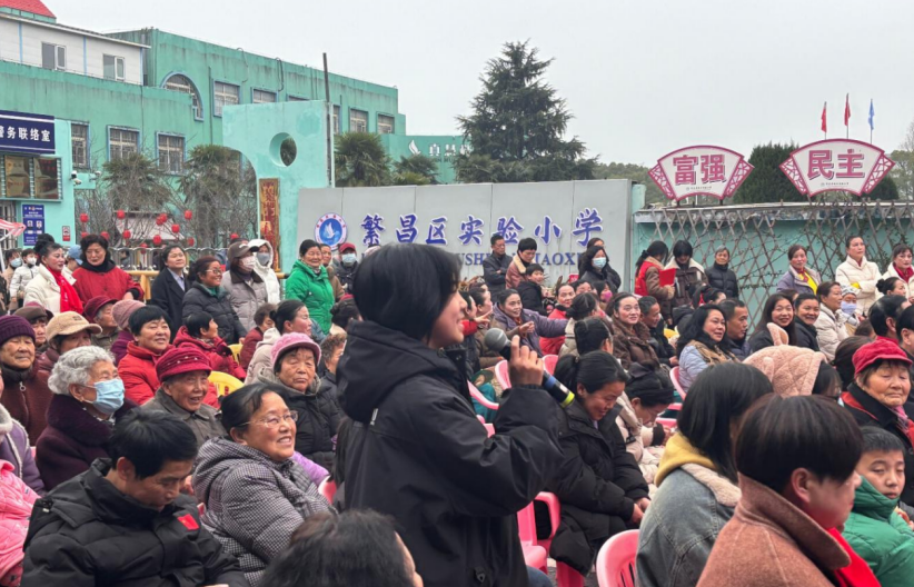 “新时代,新风尚,新青年,新担当。”2月27日下午,在繁阳社区第三届邻里节·元宵游园会活动现场,伴随着主持人的介绍,繁阳社区新时代文明实践站联合共青团繁昌区委“扬帆计划”的返乡大学生志愿者登上舞台,以“新风小课堂”形式带来原创朗诵《时代新声》,用青春之声传递文明理念,赢得现场百余名居民的热烈掌声。