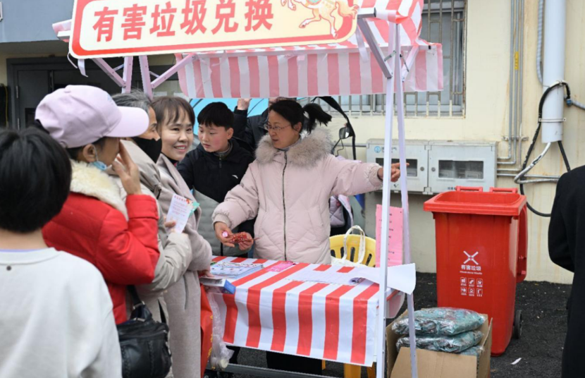 在“有害垃圾兑换”摊位前,志愿者们一边为居民带来的过期药品、废电池等有害垃圾核准登记,兑换生活用品,一边向居民讲解有害垃圾对生态环境的危害,科普专业回收处理流程。当天累计发放兑换礼品100余份,“有害换有爱”的理念深入人心。好人们还结合身边事,向居民讲解移风易俗政策,用榜样力量带动更多群众加入文明践行队伍。